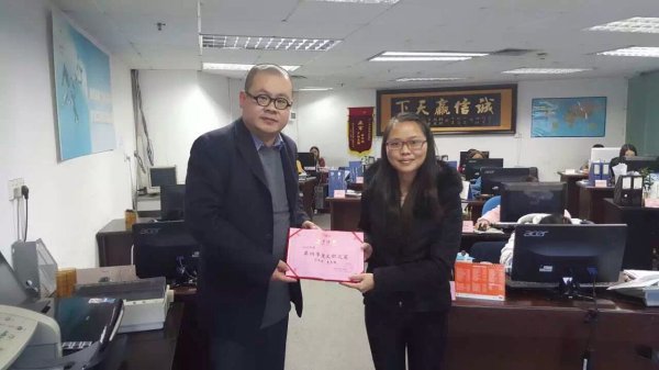 Awarding the 4th quarter excellent customer service and operation clerks 2016/5/31 11:51:10