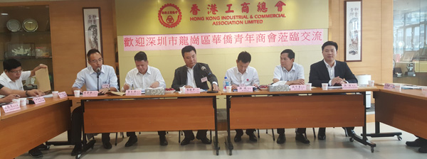 Shenzhen Long Gang Overseas Youth Chamber of Commerce Delegation, under the leadership of Mr Wu Pingqing, chairman of Long Gang Federation of Returned Overseas Chinese and Mr Tang Shengyuan, vice minister of District Committee United Front Work department, visited Hong Kong Industrial & Commercial Association Limited.